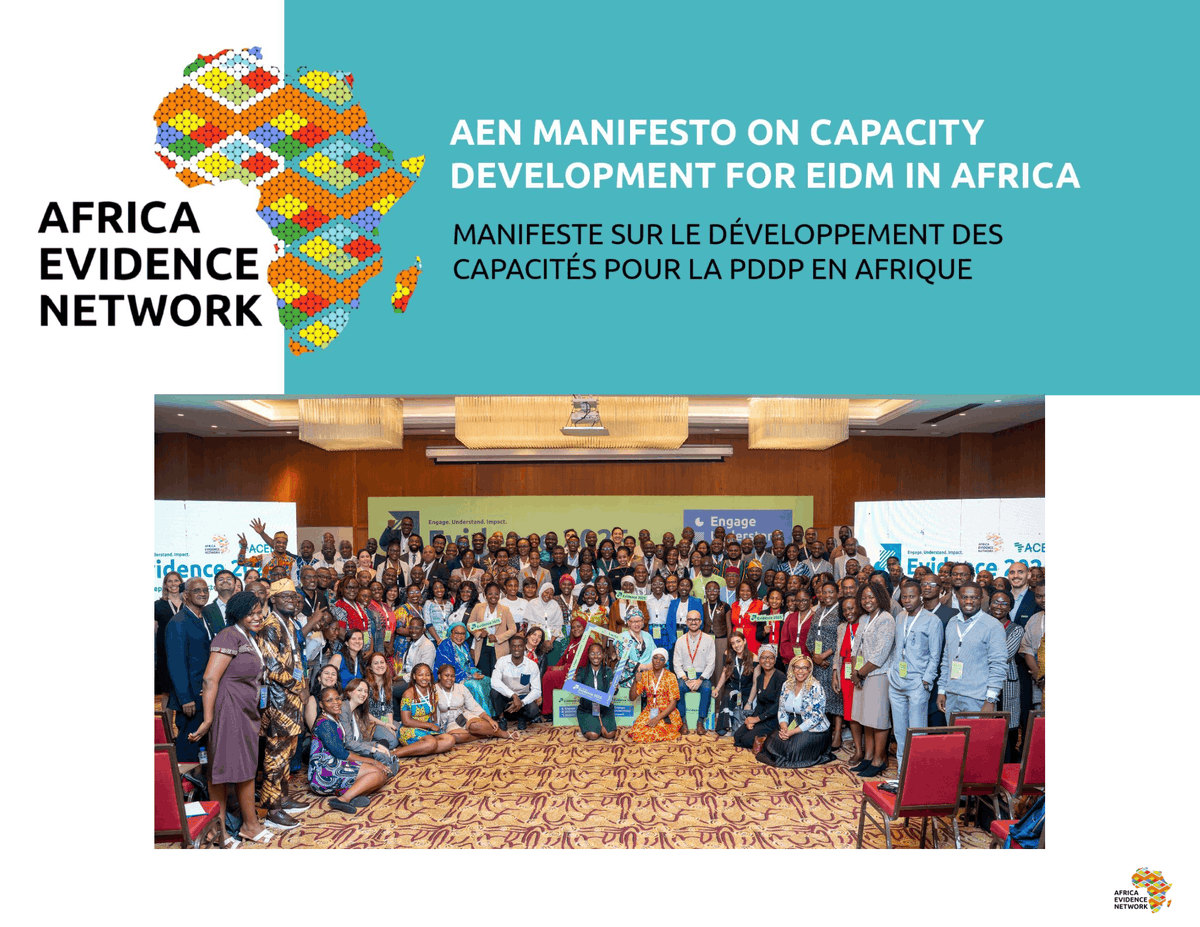 Le Manifeste de l'Africa Evidence Network sur le Développement des Capacités pour une Prise de Décision Fondée sur les Données Probantes est maintenant disponible en français et en anglais: https://africaevidencenetwork.org/wp-content/uploads/2026/03/AEN_Manifesto_Bilingual_EN_FR_final.pdf.