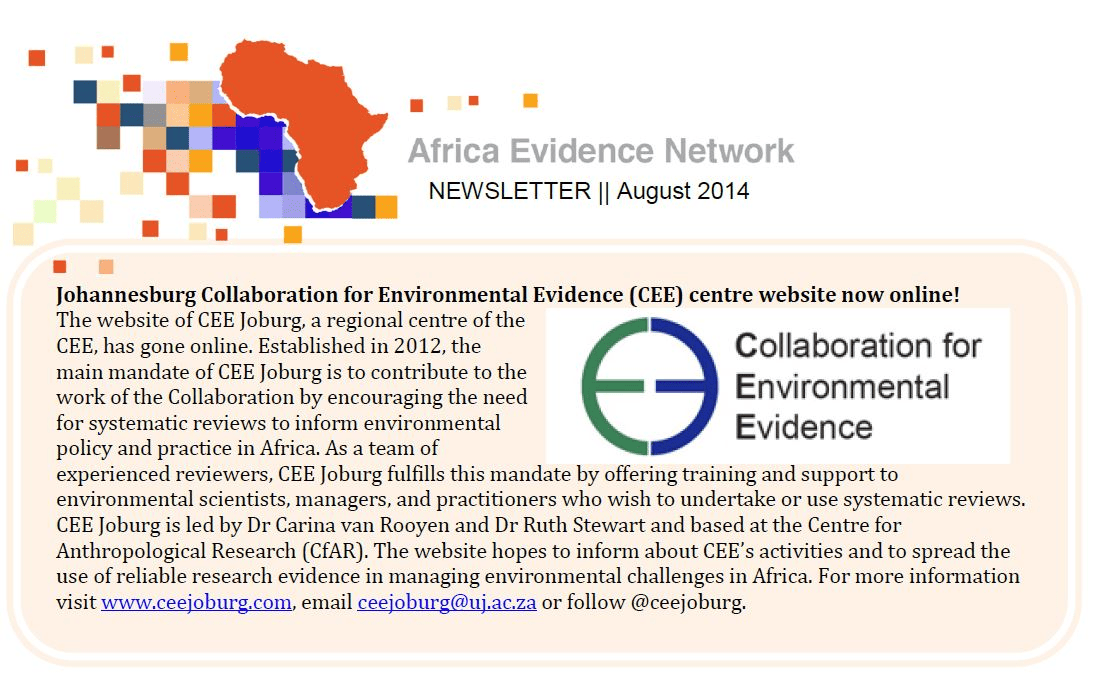 This is the Africa Evidence Network’s newsletter for August 2014. Share this: Click to share on X (Opens in new window) X Click to share on Facebook (Opens in new window) Facebook Like this:Like Loading... Related CharityAuthor posts Related Posts NewsBlog 12th December 2025Five AEN Milestones That Shaped 2025by Charity News 12th December 2025Africa Evidence Network Newsletter December 2025by Charity NewsBlog 12th December 2025Eight Years of Leading the Africa Evidence Network: A Reflection on Community, Courage, and Becomingby Charity Africa Evidence Network Newsletter July 2014 Africa Evidence Network Newsletter September 2014