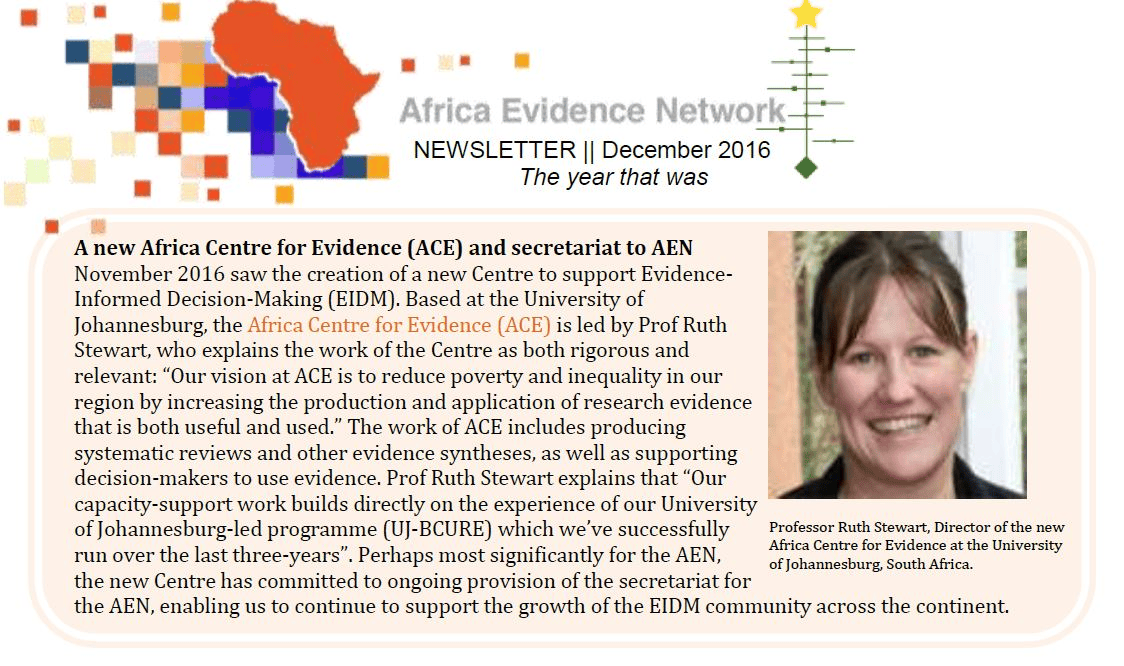 This edition highlights the work achieved by the University of Johannesburg’s Building Capacity to Use Research Evidence (UJ-BCURE) programme and the Africa Evidence Network (AEN) over the last three years.