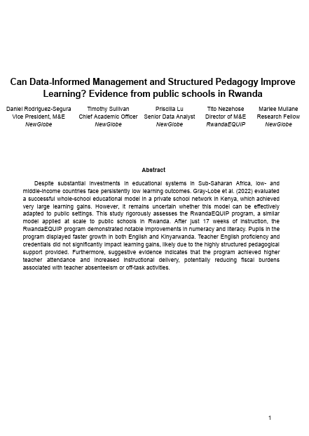Despite substantial investments in educational systems in Sub-Saharan Africa, low- and middle-income countries face persistently low learning outcomes. Gray-Lobe et al. (2022) evaluated a successful whole-school educational model in a private school network in Kenya, which achieved very large learning gains. However, it remains uncertain whether this model can be effectively adapted to public settings. This study rigorously assesses the RwandaEQUIP program, a similar model applied at scale to public schools in Rwanda. After just 17 weeks of instruction, the RwandaEQUIP program demonstrated notable improvements in numeracy and literacy. Pupils in the program displayed faster growth in both English and Kinyarwanda. Teacher English proficiency and credentials did not significantly impact learning gains, likely due to the highly structured pedagogical support provided. Furthermore, suggestive evidence indicates that the program achieved higher teacher attendance and increased instructional delivery, potentially reducing fiscal burdens associated with teacher absenteeism or off-task activities.