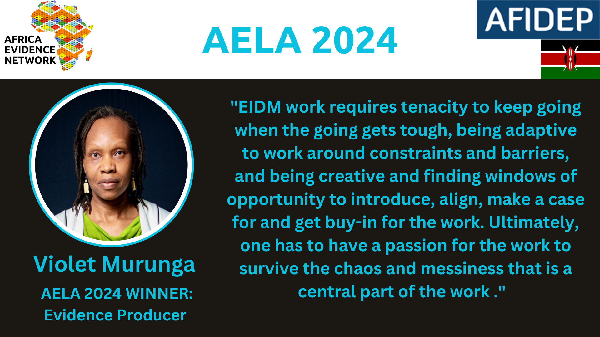 Violet Murunga is the recipient of the Africa Evidence Leadership Award 2024 in the Evidence Producer category offered by the Africa Evidence NetworkWe asked Violet to reflect on her work.