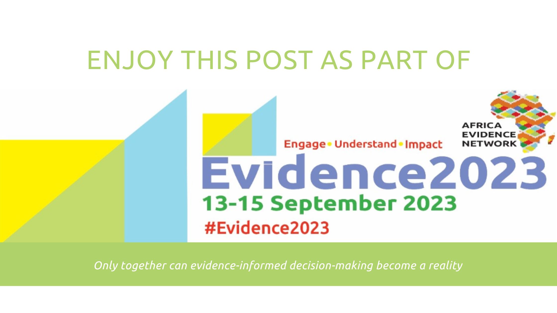 Disclaimer: The views expressed in published articles, as well as any errors or omissions, are the sole responsibility of the author/s and do not represent the views of the Africa Evidence Network, its secretariat, advisory or reference groups, or its funders; nor does it imply endorsement by the afore-mentioned parties. We hope you enjoyed this blog teaser. Be sure to watch our newsletter for when the full blog post is published after Evidence 2023.