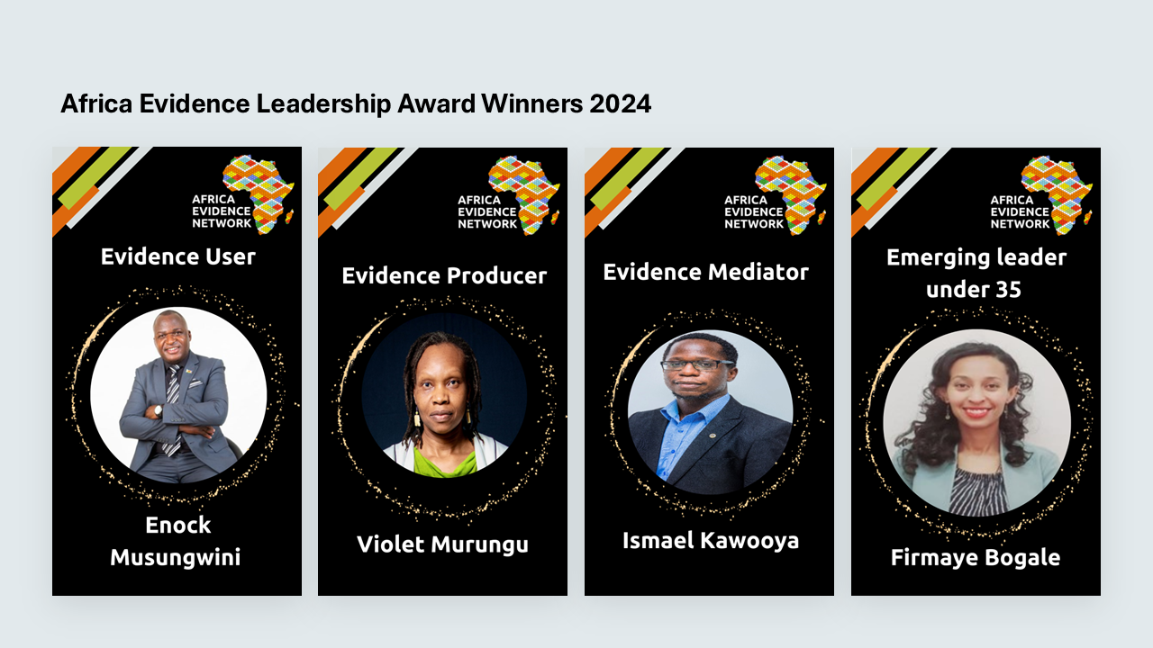 The Africa Evidence Network hosted its 6th Africa Evidence Leadership (AELA) award ceremony online during Africa Evidence Week on 21 August 2024 from 14:00 to 15:15 hours (SAST). This webinar was an opportunity for the AELA winners and runners-up to celebrate their remarkable achievements.