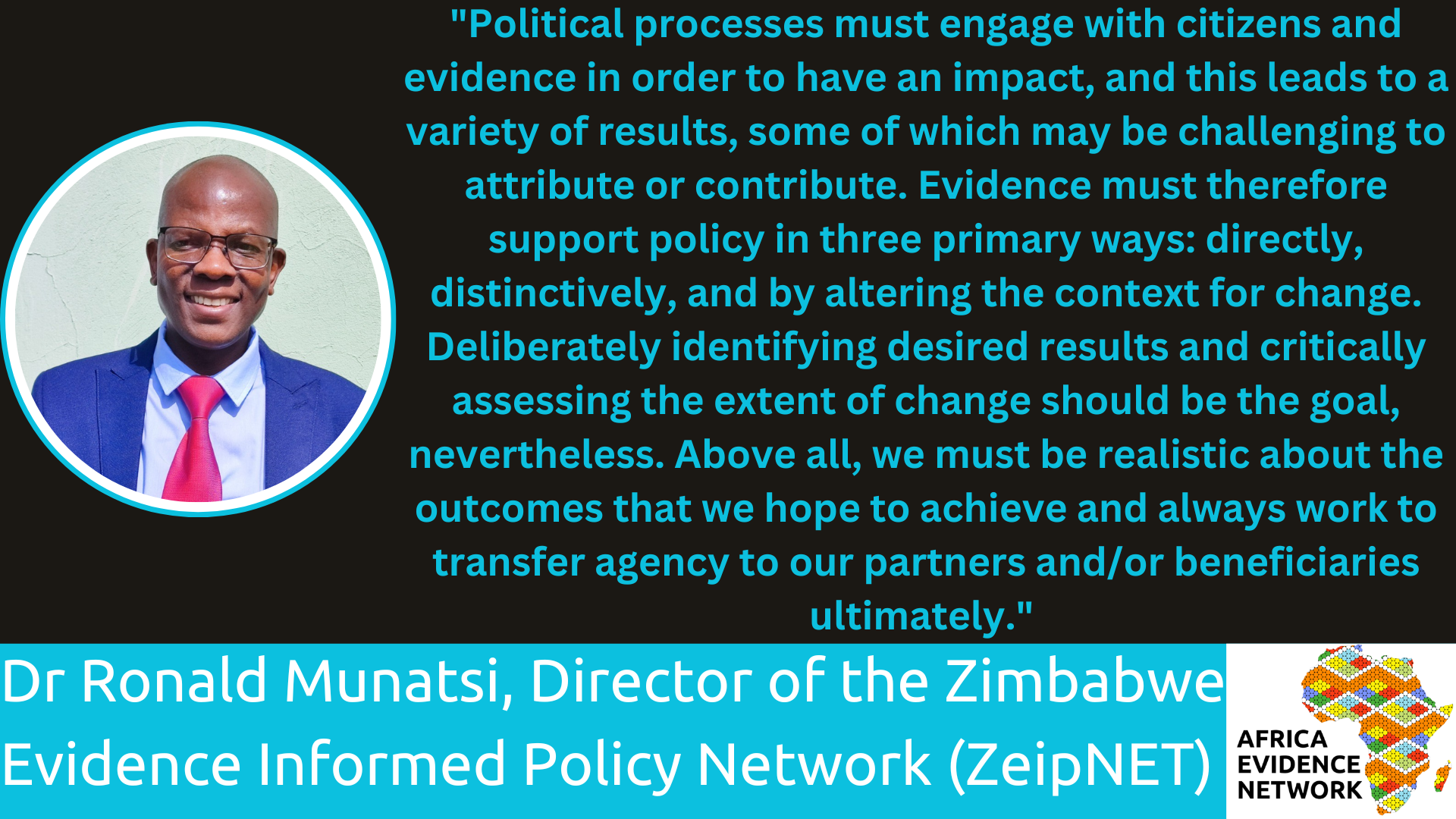 Suggested citation: Munatsi R (2025) Policy impact in evidence-to-policy interventions: Be realistic about your envisaged outcomes and strive to hand over agency. Blog posting on 19 September 2025. Available at: https://africaevidencenetwork.org/policy-impact-in-evidence-to-policy-interventions-be-realistic-about-your-envisaged-outcomes-and-strive-to-hand-over-agency/2025/09/19/