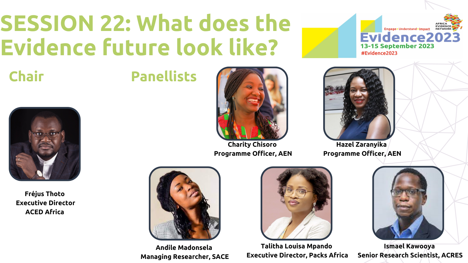 #Evidence2023 rounded up with an exciting new panel of emerging African evidence leaders who reflected on the event and looked forward to the future. Delegates were invited to contribute and collectively identify future goals.